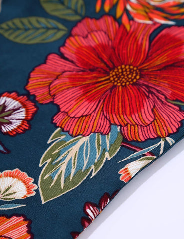 BAISHENGGT Flowers Blooming Women's V Neck Buttons Pleated Flared Comfy Tunic Tops