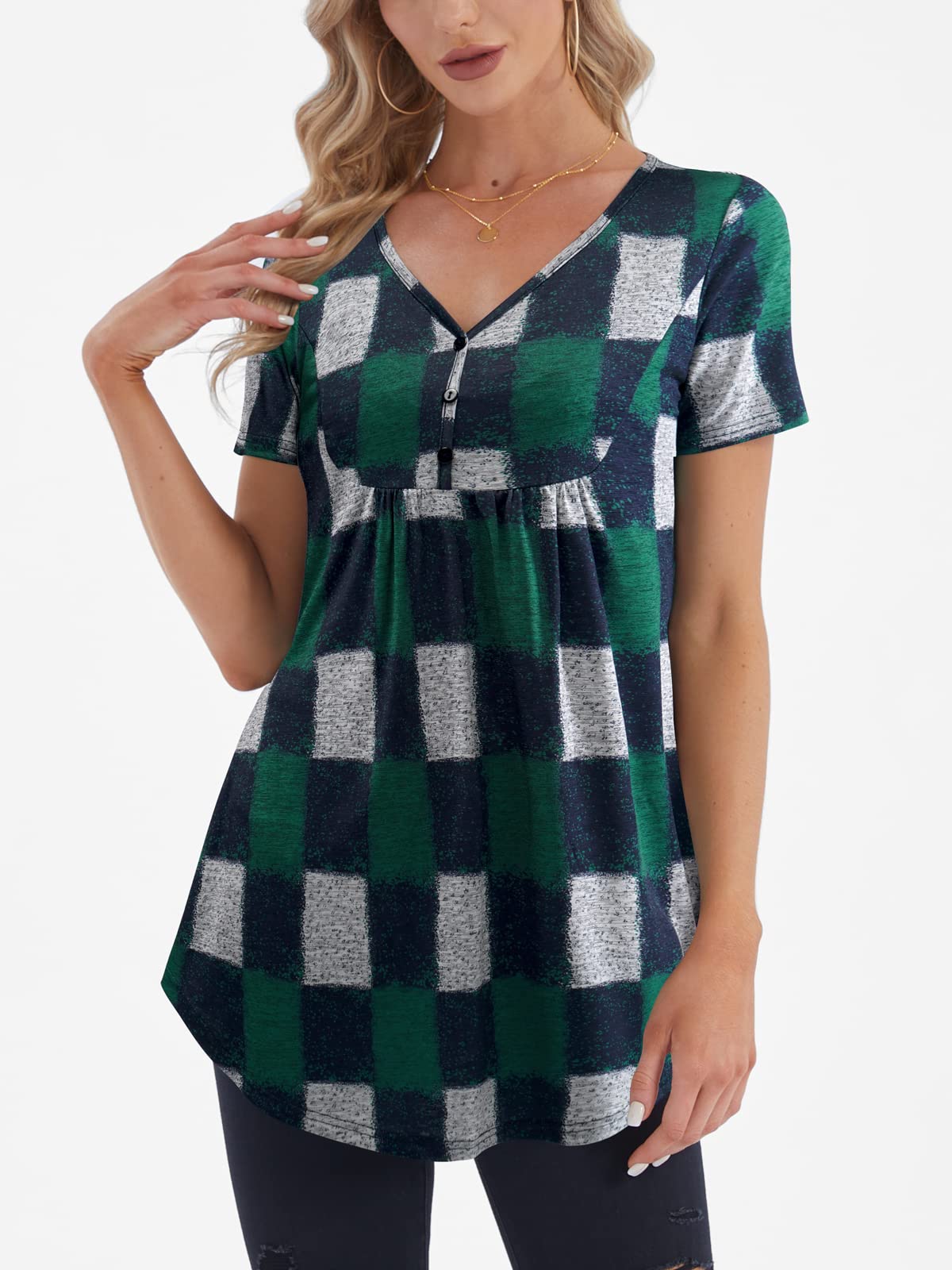 Pleated front design drapes nicely and hides the belly really well, is extremely comfortable, and can be dressed up or down. Long enough to wear it with leggings or jeggings!